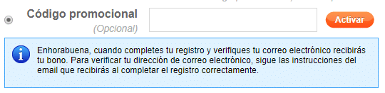 - Código promocional de bienvenida: Hasta 200 euros con nuestro primer depósito